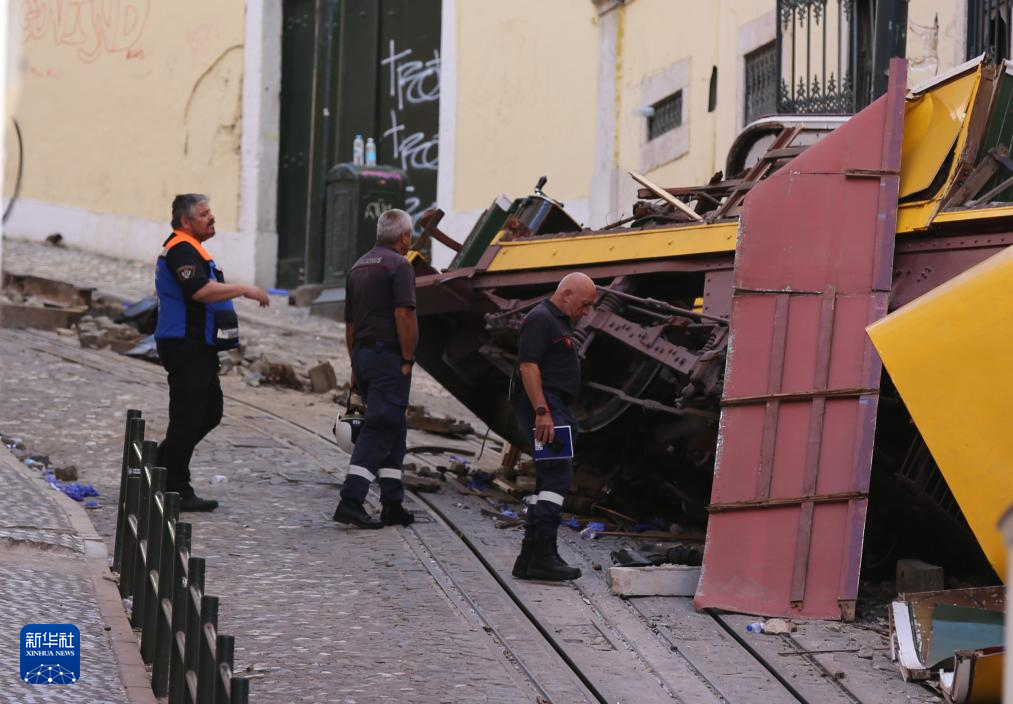 9月4日,工作人员查看里斯本有轨升降缆车事故现场。
