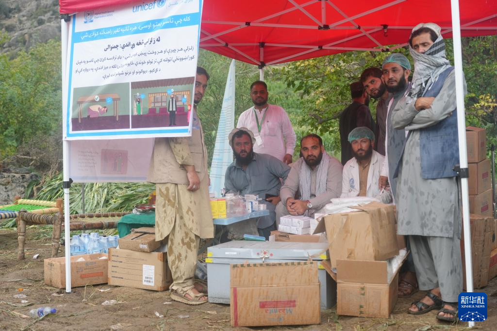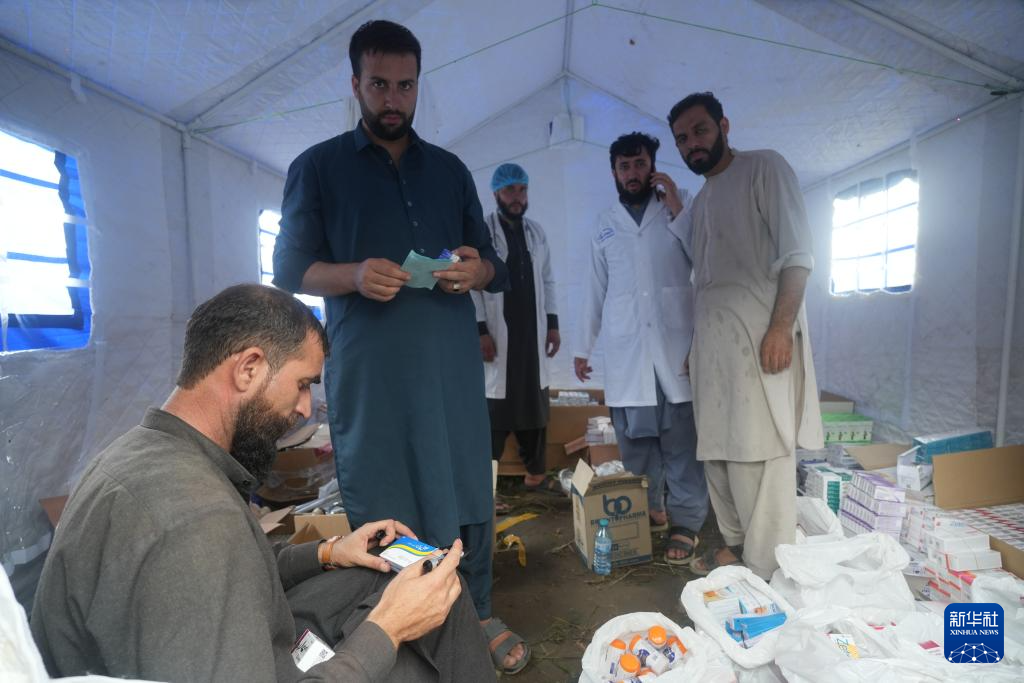 9月3日,在阿富汗库纳尔省苏基地区,医护人员准备向受灾民众发放药品。