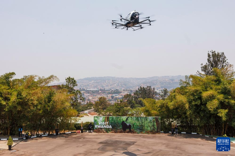 9月4日,在卢旺达首都基加利举行的第九届非洲航空峰会上,中国亿航智能旗舰产品EH216-S电动垂直起降飞行器(eVTOL)进行公开飞行展示。