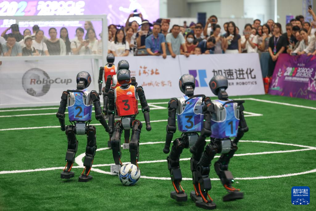 这是9月5日在2025世界智能产业博览会拍摄的机器人3V3足球赛。