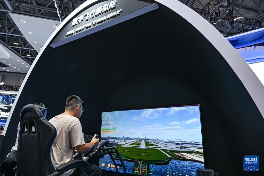9月5日,观众在2025世界智能产业博览会上体验“数字飞行模拟舱”。
