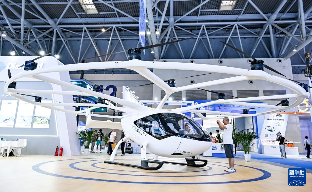 9月5日,观众在2025世界智能产业博览会上参观电动垂直起降飞行器。