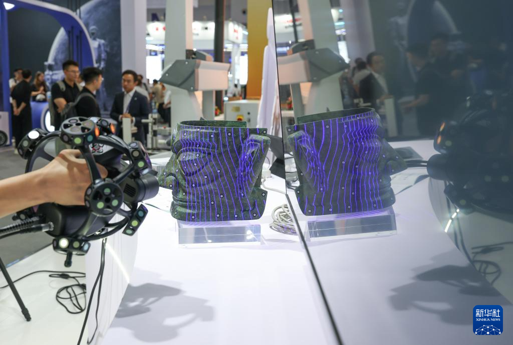 9月5日,工作人员在2025世界智能产业博览会上演示跟踪式三维扫描仪。