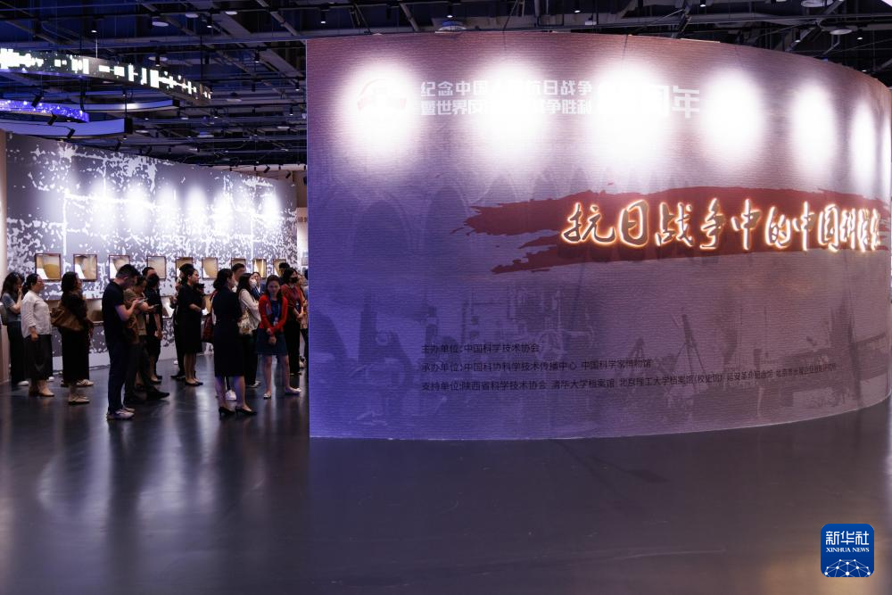 9月5日,参观者在国家科技传播中心举行的“抗日战争中的中国科学家——纪念中国人民抗日战争暨世界反法西斯战争胜利80周年专题展”上观展。