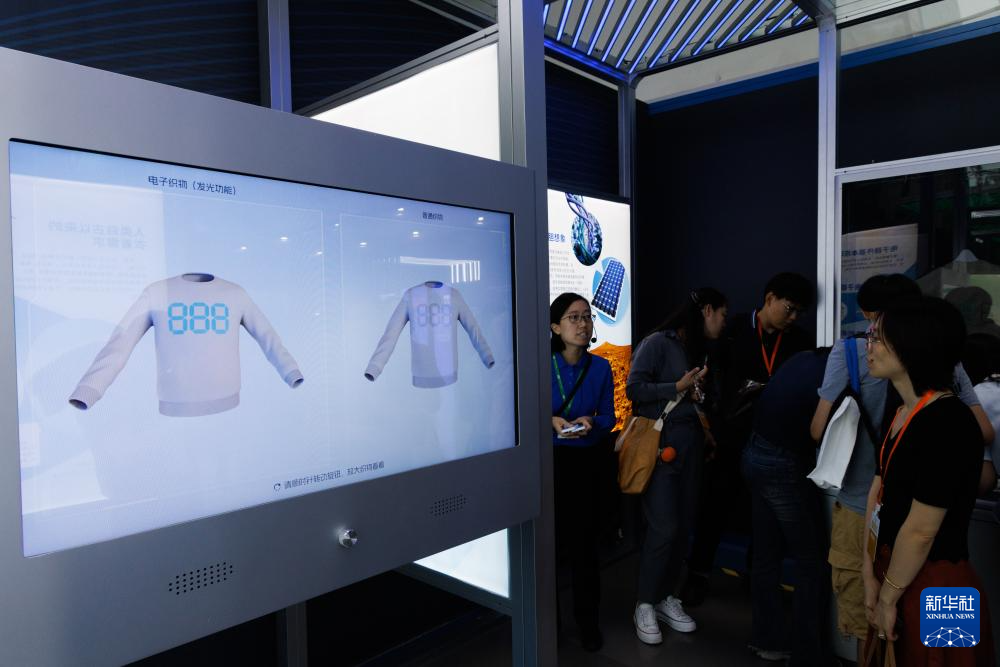 9月5日,参观者在中国科技馆了解可穿戴电子织物展品。
