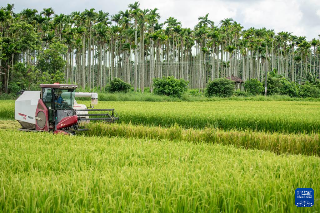 9月5日,农民在海南省琼海市龙寿洋田野公园收割再生稻。