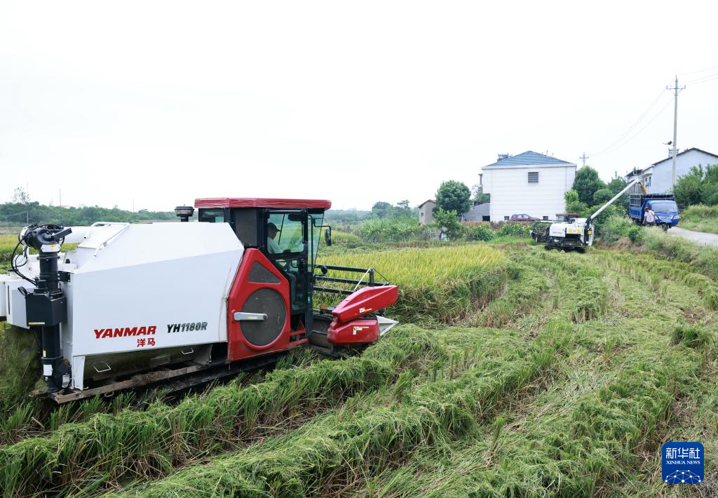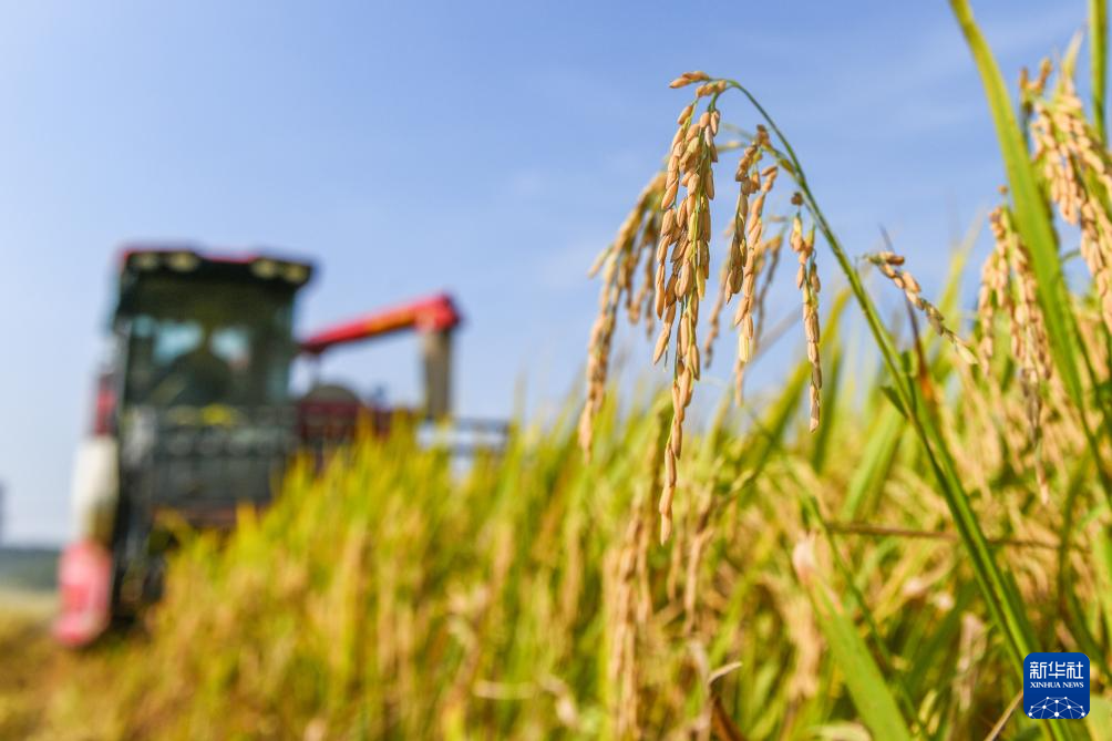 9月6日,在湖南省永州市道县营江街道芒头寨村,农机手驾驶农机收割水稻。