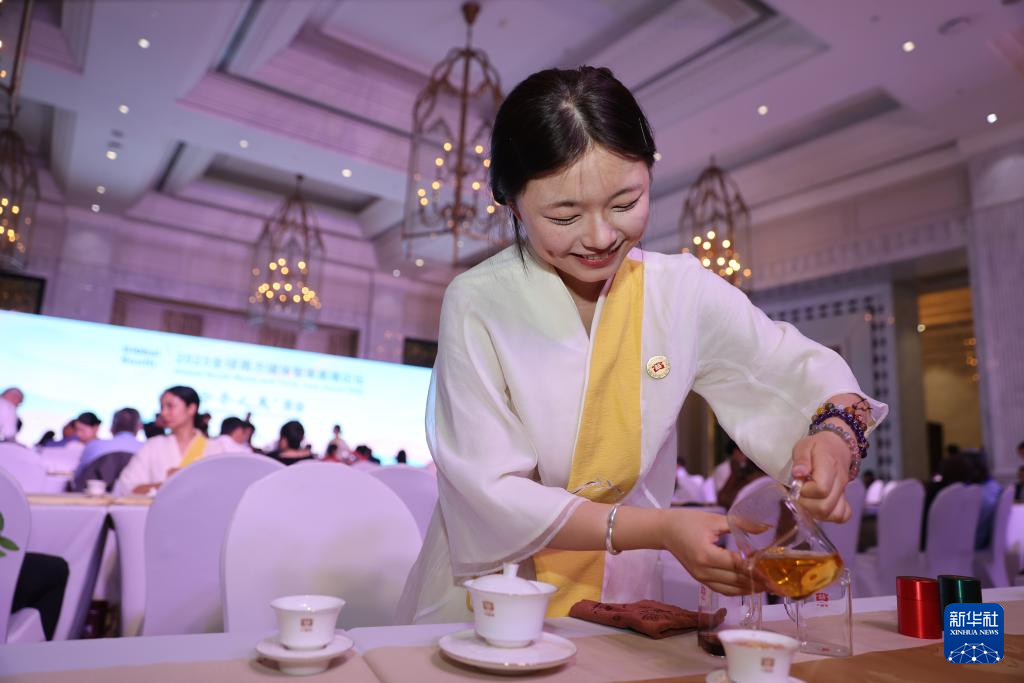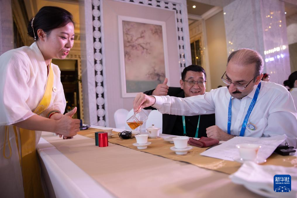 9月6日,与会嘉宾在品尝云南普洱茶。