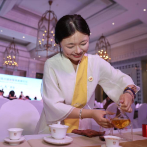 9月6日,茶艺师在为与会嘉宾倒茶。