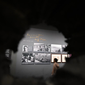 9月7日,在中国国家博物馆,一名媒体人员在参观白求恩的照片。