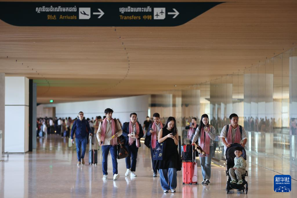 9月9日,在柬埔寨干丹省,首批乘客抵达德崇国际机场。