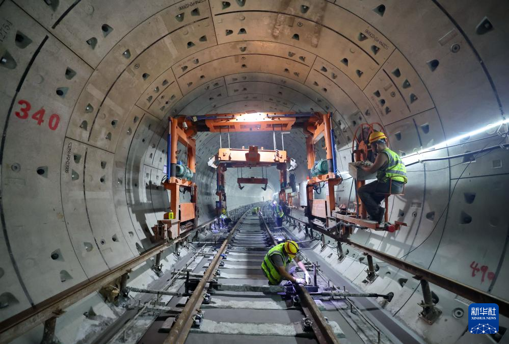9月7日,工人在石家庄地铁4号线一期工程建设工地施工。