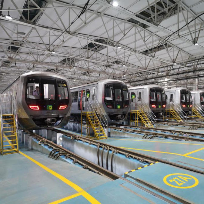 9月9日,地铁列车在石家庄市地铁西兆通车辆段整装待发。