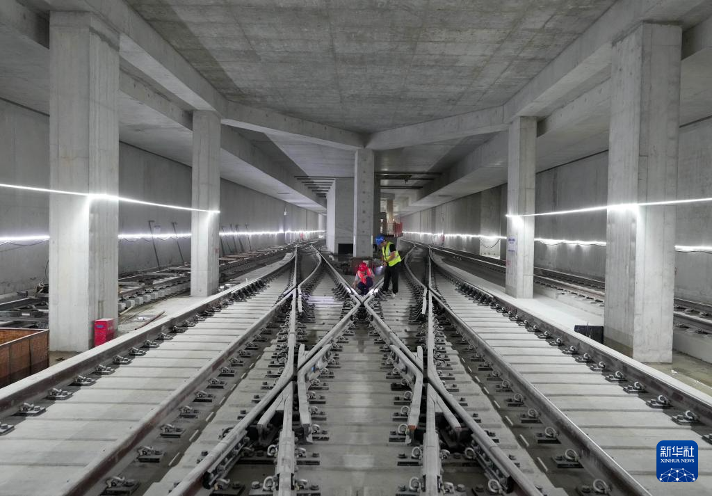 9月7日,工人在石家庄地铁4号线一期工程东垣东路站建设工地施工。