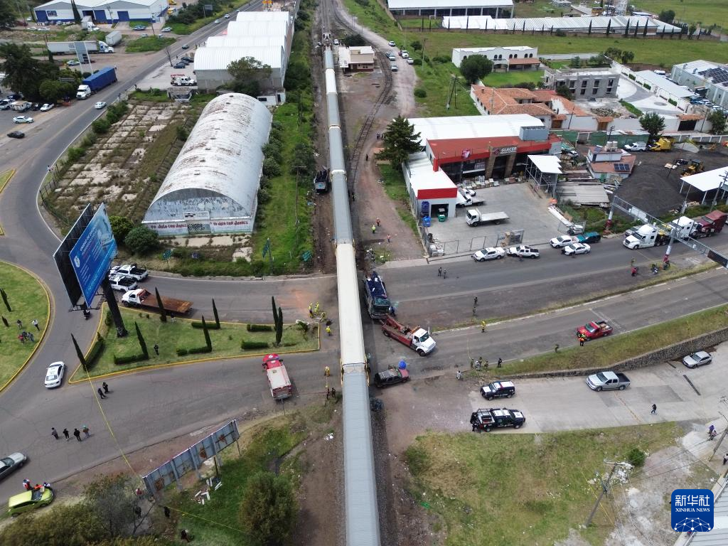 这是9月8日在墨西哥中部墨西哥州的阿特拉科穆尔科拍摄的火车与大客车相撞事故现场(无人机照片)。
