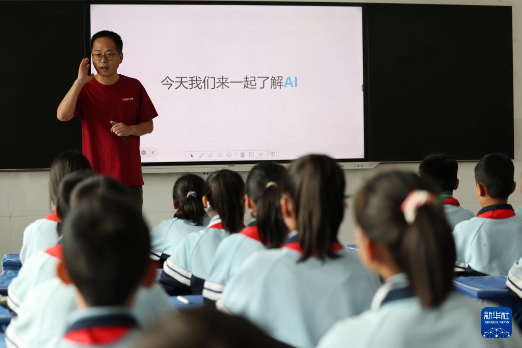 9月10日,联想AI专家陈明金在盐川学校为孩子们上AI启蒙课程。