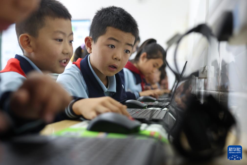 9月10日,盐川学校的学生在再生电脑教室里体验AI课程。