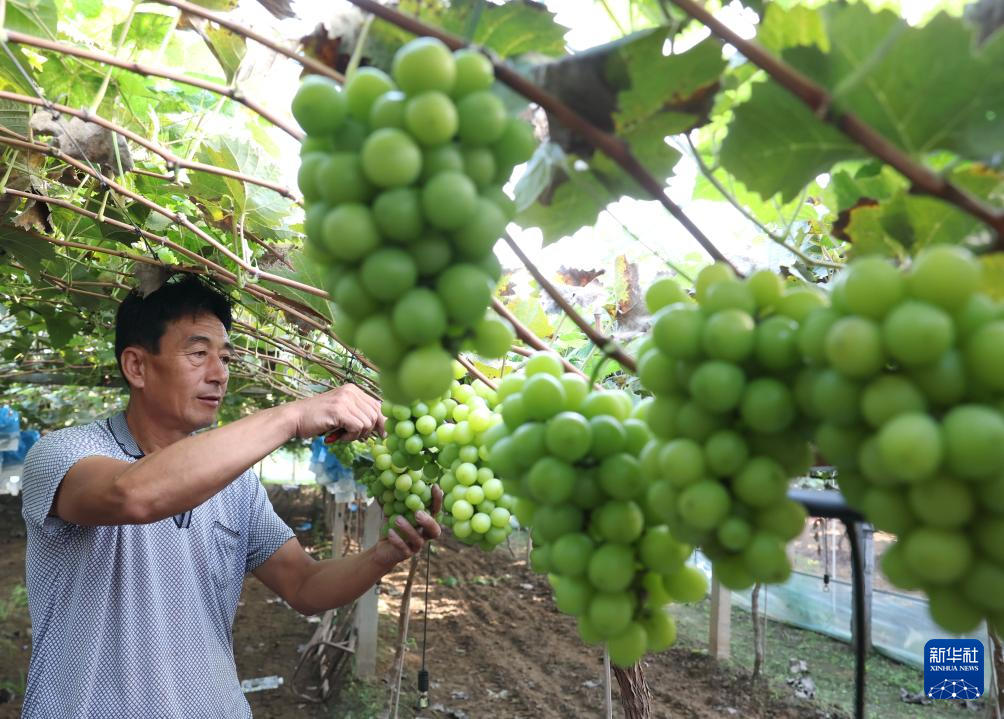 9月11日,在河北省晋州市桃园镇周头村一家葡萄种植基地,农民在采收葡萄。