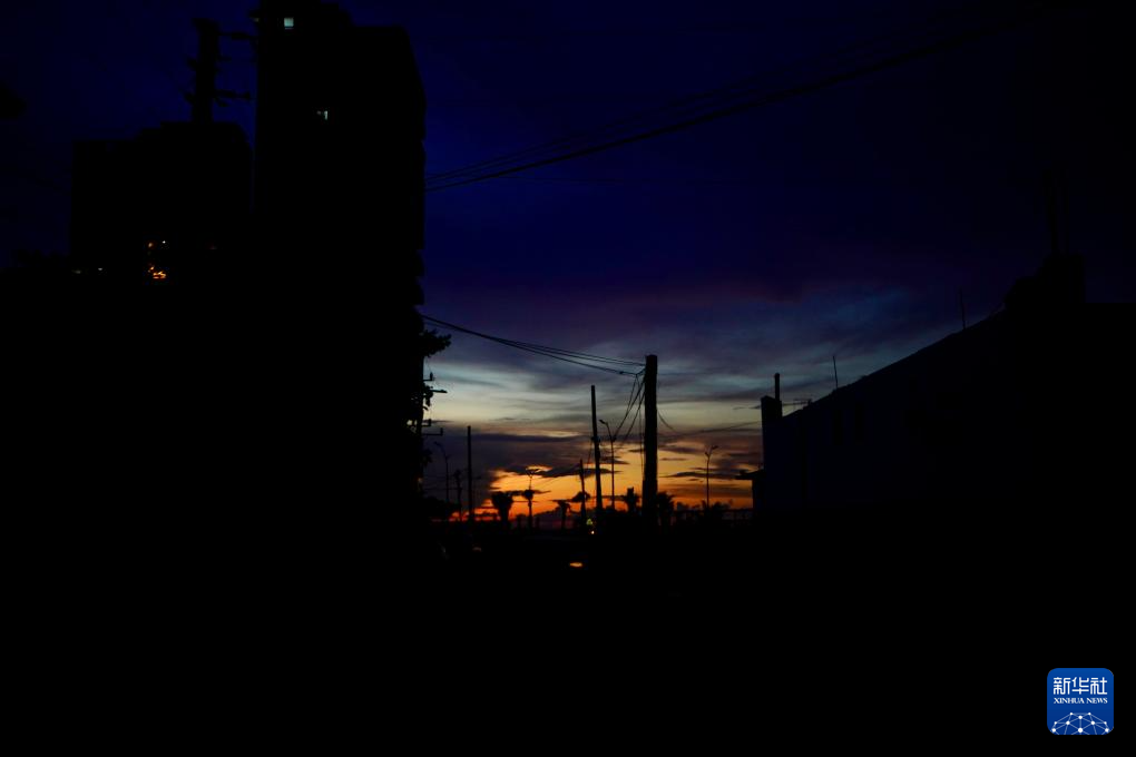 这是9月10日晚在古巴首都哈瓦那拍摄的停电后的街区。