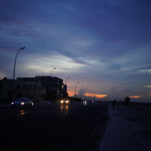 这是9月10日傍晚在古巴首都哈瓦那拍摄的停电后的海滨大道。