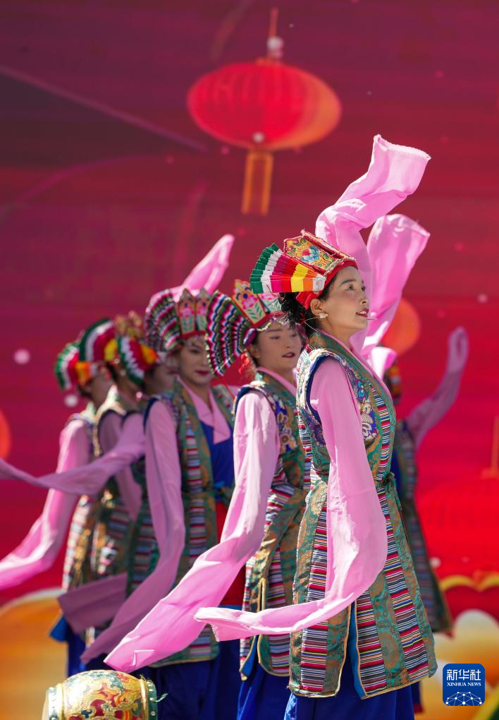 9月12日,在第四届藏香文化旅游节开幕式现场,演员进行歌舞表演。