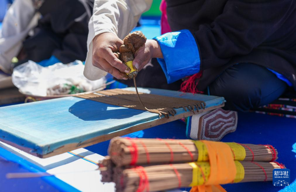 9月12日,艺人在第四届藏香文化旅游节开幕式现场展示尼木藏香制作工艺。