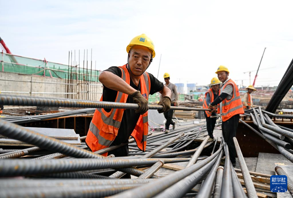 9月12日,工人在雄忻高铁雄安地下段及相关配套工程四标段建设现场捆绑钢筋。