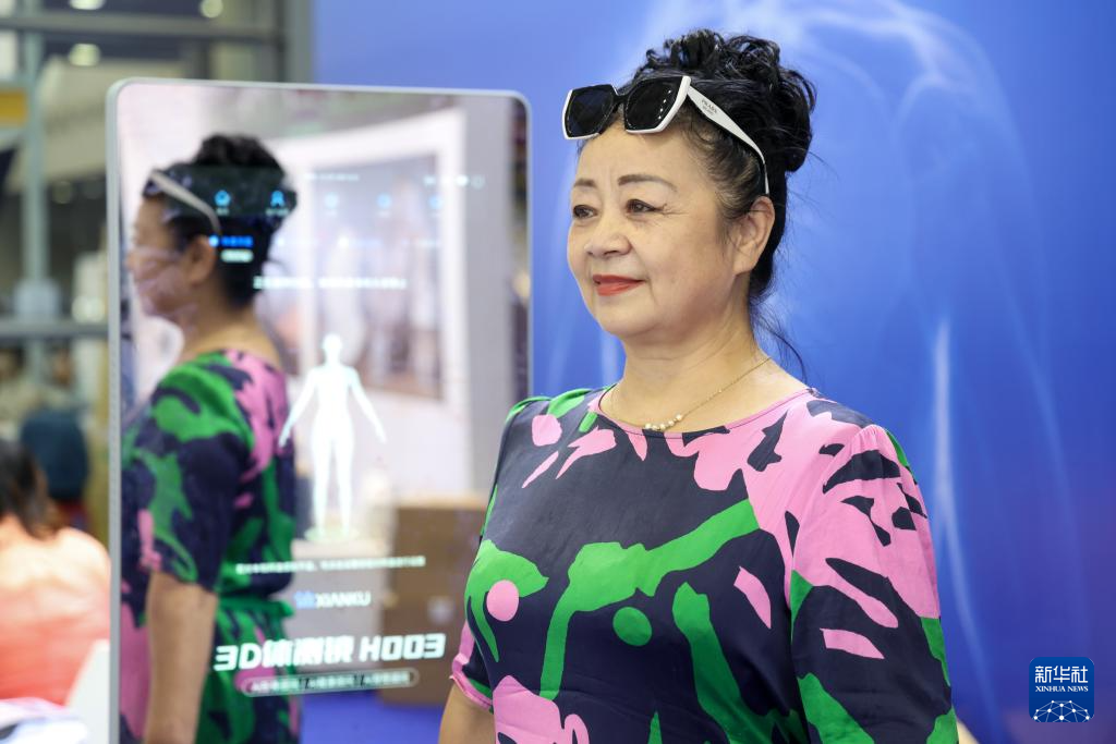 9月12日,观众在展会现场了解一款助听AI智能眼镜。