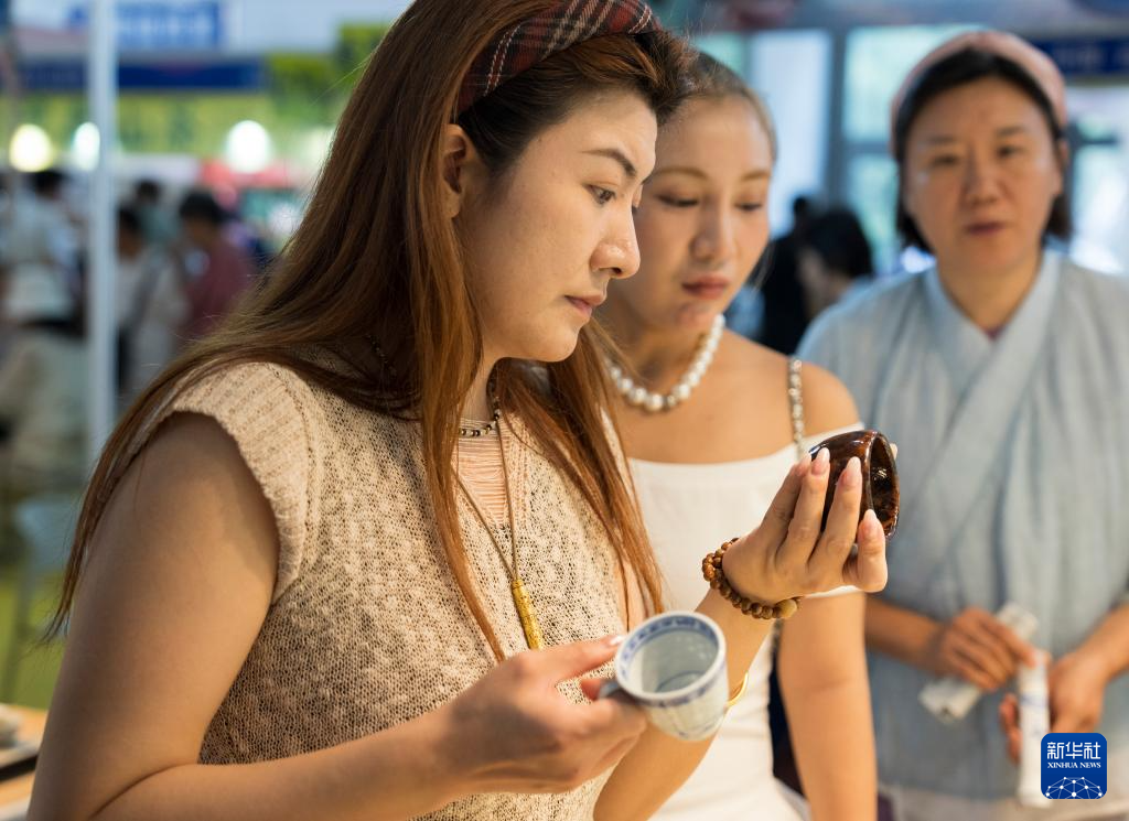 9月12日,参观者在2025北京国际茶业及茶艺博览会(秋季)上挑选茶具。