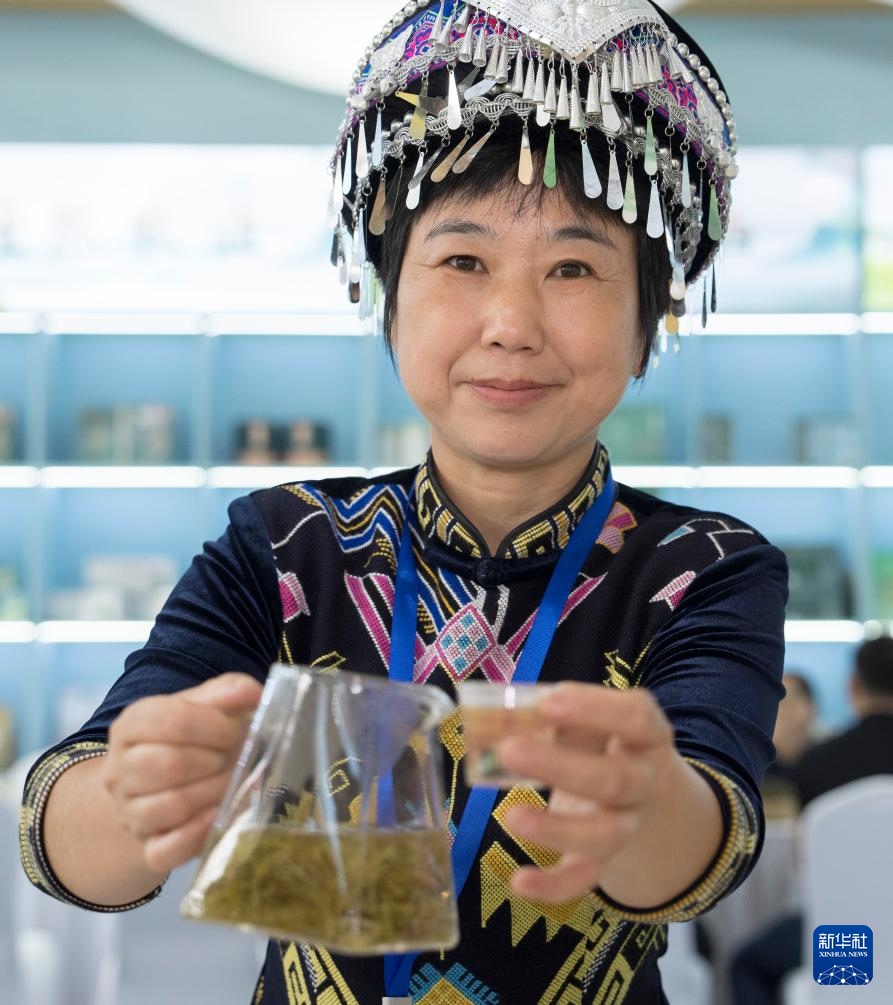 9月12日,在2025北京国际茶业及茶艺博览会(秋季)上,参展商展示来凤藤茶。