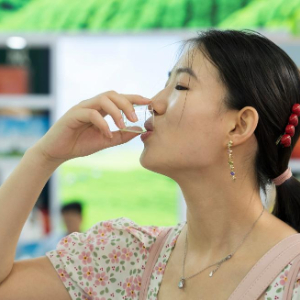 9月12日,在2025北京国际茶业及茶艺博览会(秋季)上,参观者品尝贵州铜仁展台的铜仁抹茶。