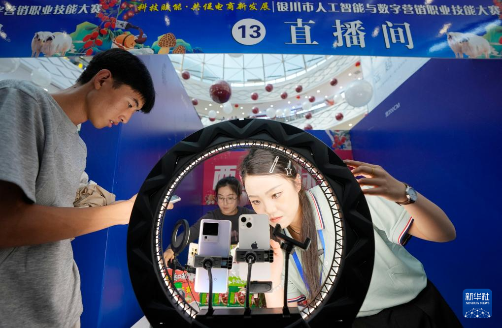 9月12日,宁夏银川市人工智能与数字营销职业技能大赛在银川市金凤区举行。60名通过初赛的选手同场竞技,现场打造“绿色农产品直播间”“数字人直播间”“退役军人直播间”“观众体验直播间”等互动区域。通过这次大赛,银川市将进一步整合行业资源,促进直播电商与本地产业深度融合,激发电商直播领域的创新活力。