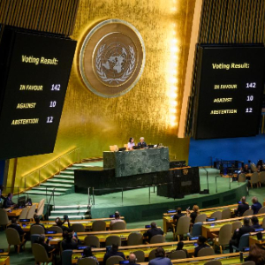 联合国大会12日以142票赞成、10票反对、12票弃权的表决结果通过一项决议,支持关于和平解决巴勒斯坦问题及实施“两国方案”的纽约宣言。