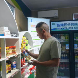 福州灰炉新苑小区居民使用通过垃圾分类获得的积分兑换商品(9月13日摄)。