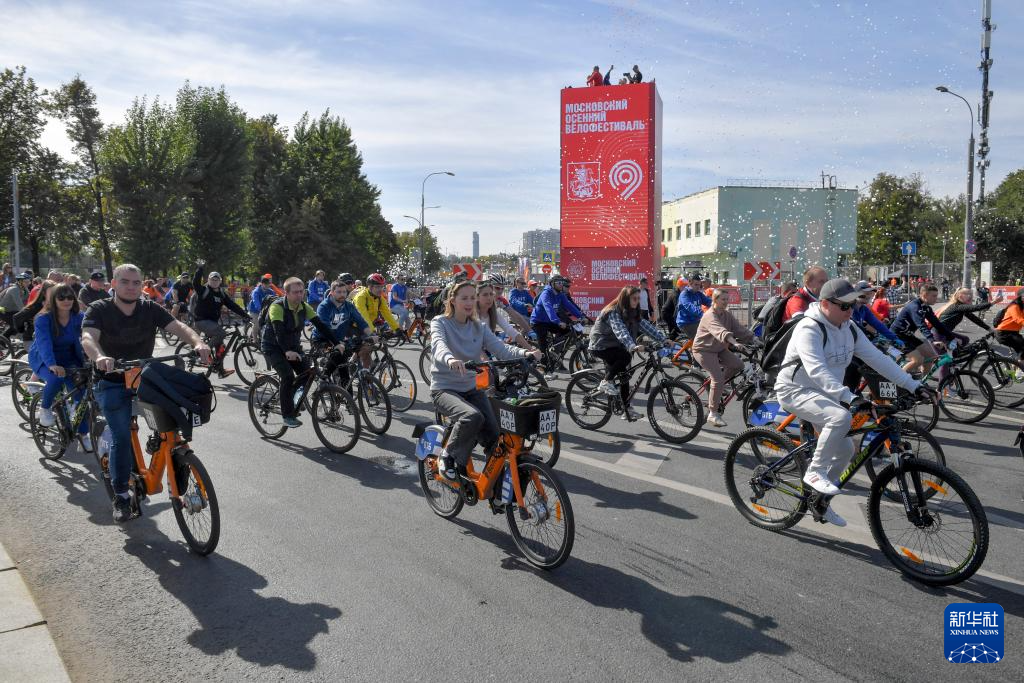 9月13日,人们在俄罗斯莫斯科参加骑行活动。