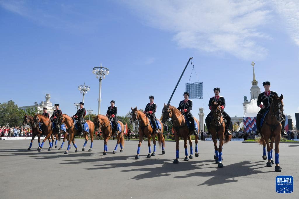 9月13日,人们在俄罗斯莫斯科国民经济成就展览馆观看表演。