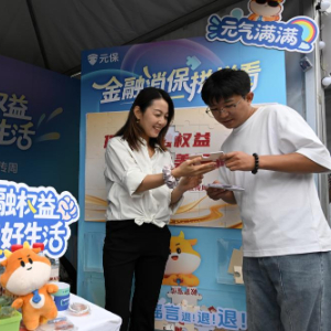 9月15日,在北京金融街购物中心广场举行的“金融集市”上,一家保险中介机构工作人员向市民介绍金融消保相关知识。
