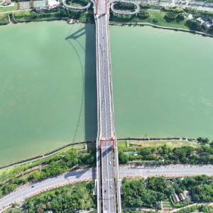 拼版照片:这是广西南宁市良庆大桥建成前后对比图(无人机照片,上图为2025年9月6日摄,下图为2015年8月13日摄)。