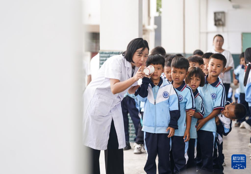 9月15日,孟连县公信乡卫生院工作人员在戈的小学为学生们进行视力筛查。