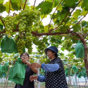 9月16日,村民在肥城市老城街道河口村的肥城市河兴农业专业合作社葡萄草莓种植基地收获葡萄。