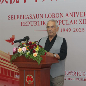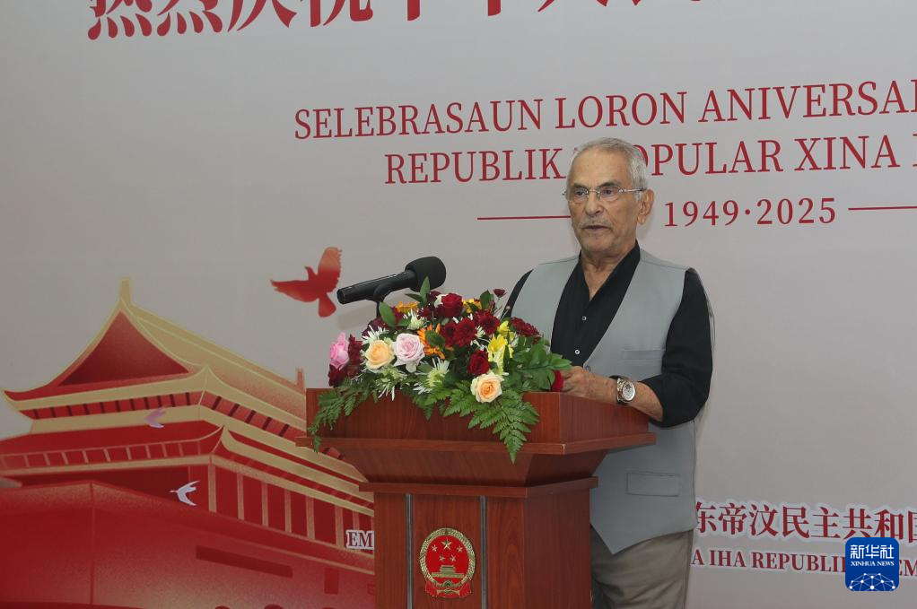 9月16日,东帝汶总统奥尔塔在位于帝力的中国驻东帝汶使馆举行的庆祝中华人民共和国成立76周年招待会上致辞。