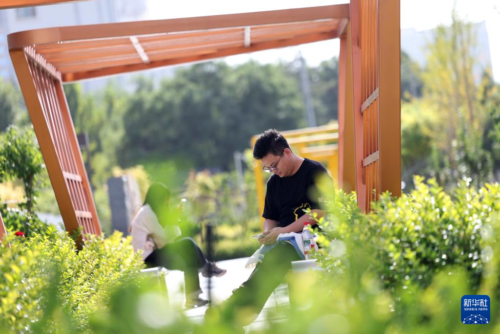 市民在兰州市城关区盘旋路口的一处公园内休闲(9月16日摄)。