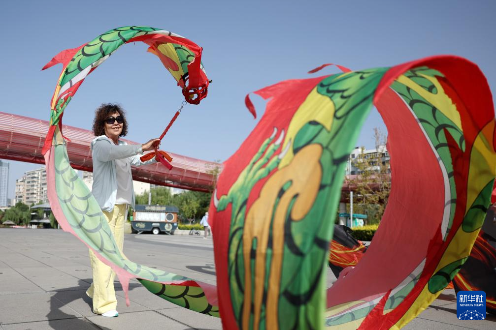 市民在兰州市城关区雁滩公园前的空地上锻炼身体(9月16日摄)。
