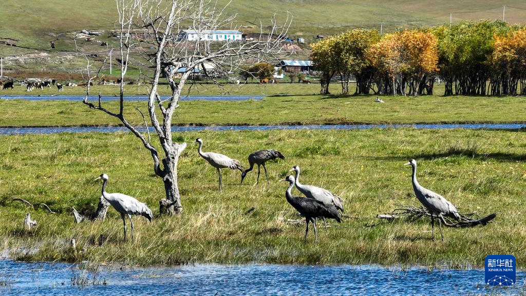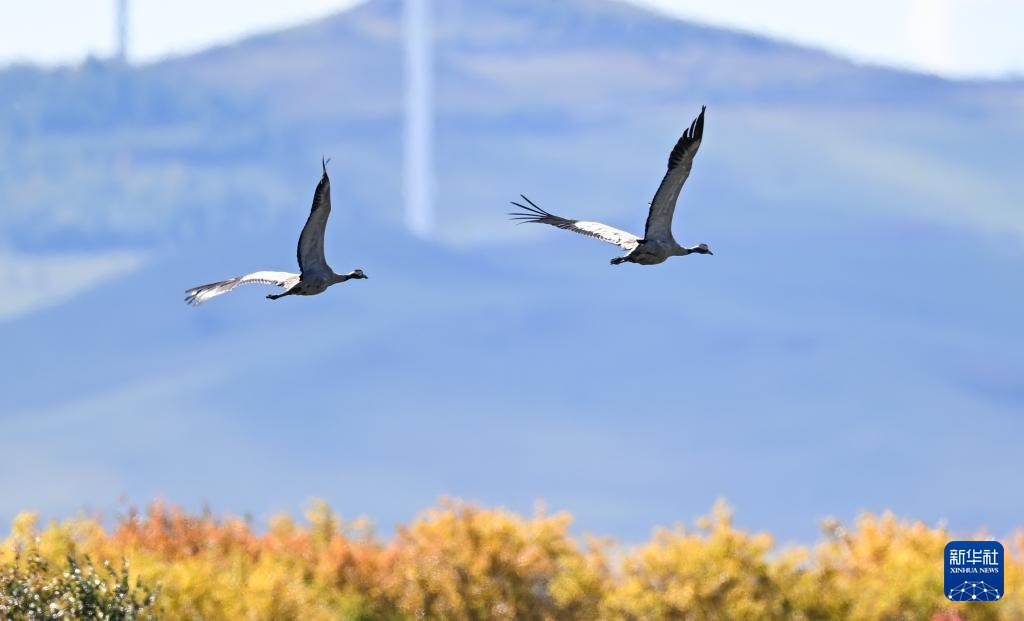 9月16日在额尔古纳湿地自然保护区拍摄的灰鹤。