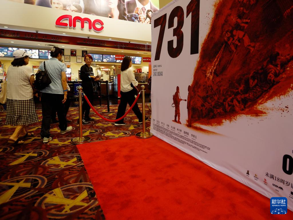 9月18日,在美国洛杉矶地区,观众进入影院准备参加电影《731》洛杉矶首映。