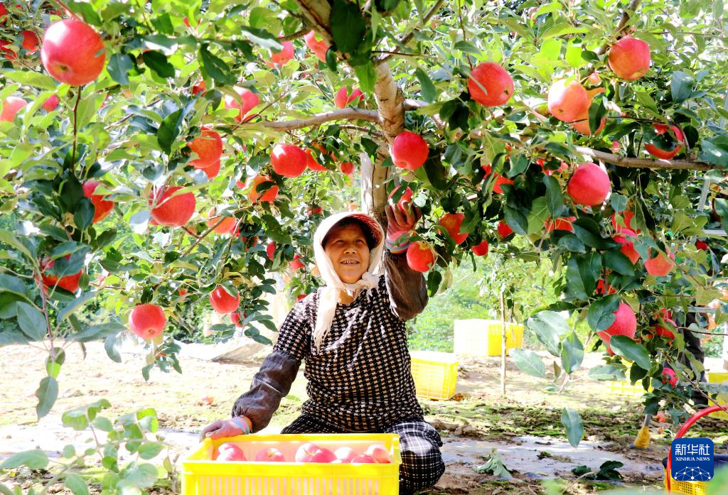 9月11日,在甘肃省平凉市静宁县威戎镇杨湾村,果农在采摘苹果。