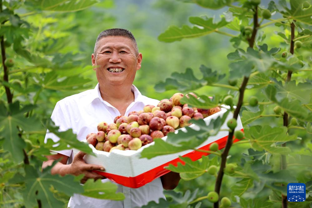 9月7日,山东省枣庄市市中区孟庄镇苗庄村农民在果园展示刚刚采摘的无花果。