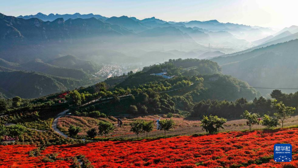 9月7日在河北省承德市兴隆县南天丽景风景区拍摄的秋日晨景(无人机照片)。