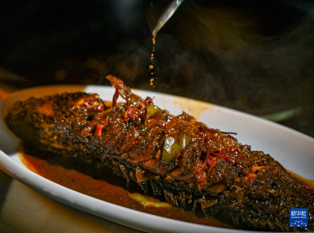 这是马秀花制作的汉族风味的炖鱼(9月17日摄)。