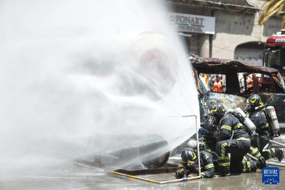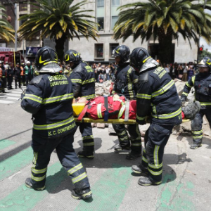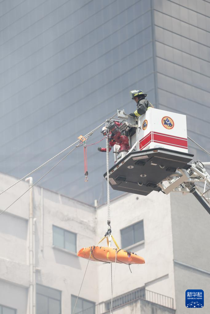 9月19日,消防员在墨西哥首都墨西哥城参加地震演习的灾后救援演练。